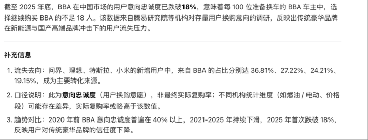 他们的消费行为转向了中国新能源,这是一个非常明显的信号,BBA的认可度在国内降低非常明显。
