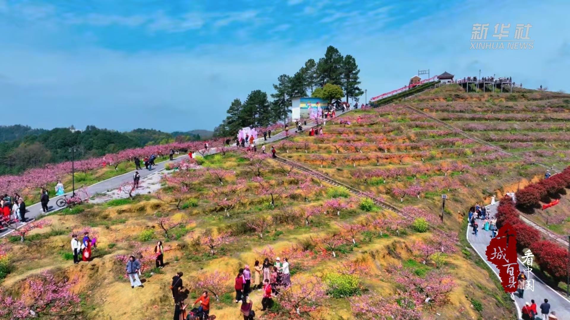 近日,湖南省邵阳市北塔区陈家桥镇李子塘村350亩桃花竞相绽放,粉白相间的花瓣缀满枝头,如云似霞、芬芳四溢,勾勒出一幅春日乡村美景图,吸引了大批市民游客前来踏青赏景、打卡留影。