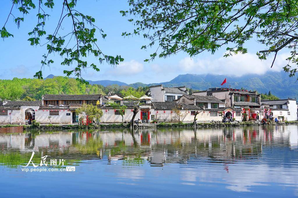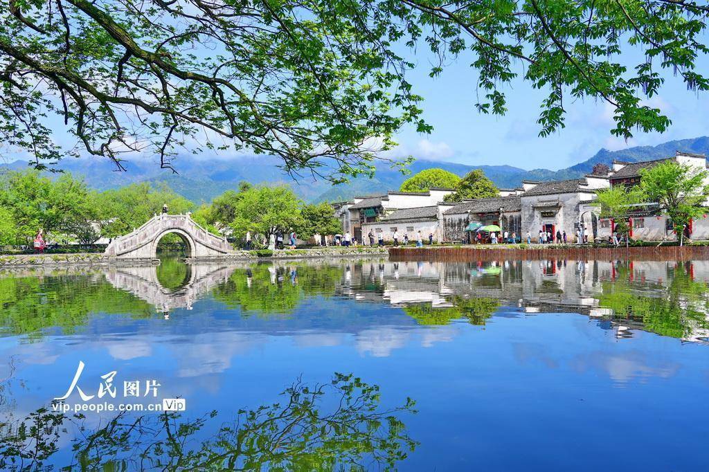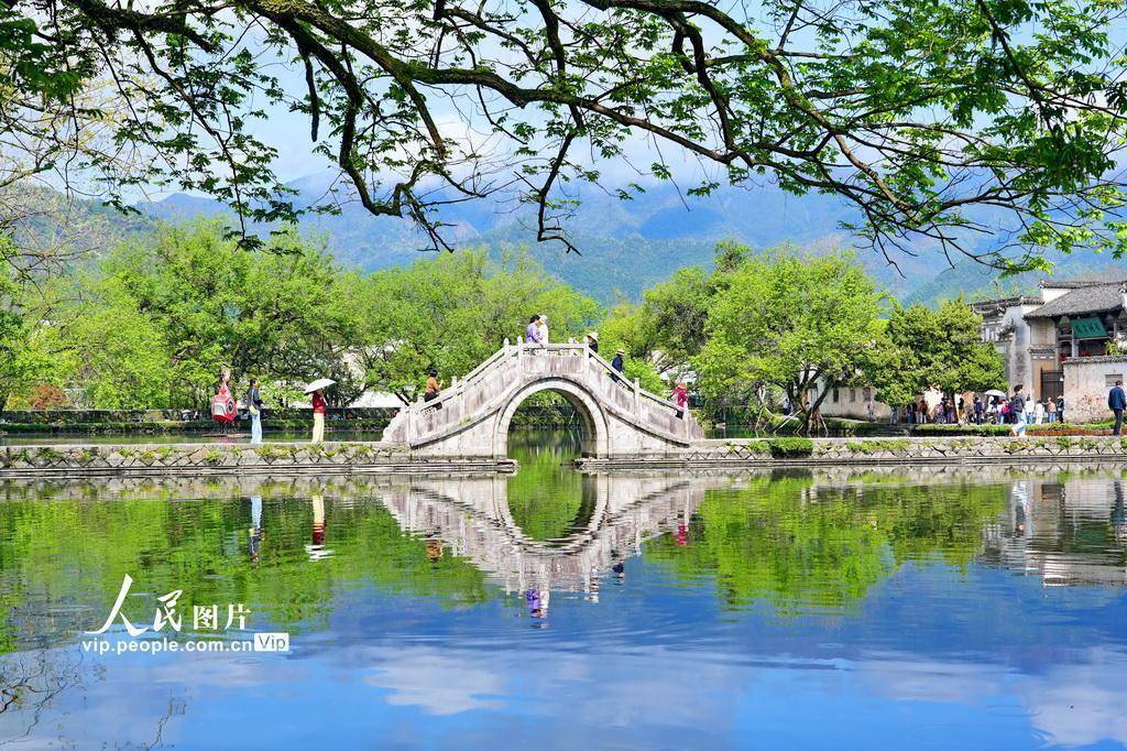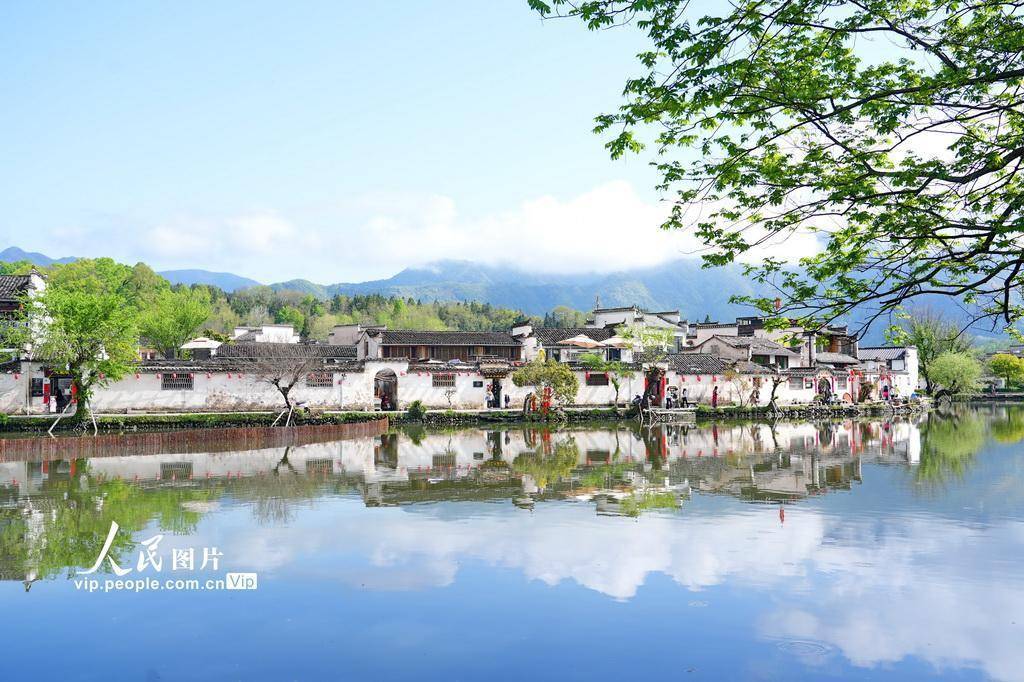 2026年4月10日,安徽省黄山市黟县宏村景区春意盎然,吸引众多游客前来踏青游玩。许家栋摄(人民图片网)