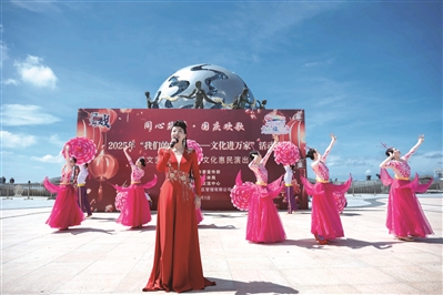 上午,银滩景区洋溢着浓厚的节日氛围。潮街沿线,五星红旗迎风飘扬;“潮”雕广场上文艺演出精彩纷呈,演员们以灵动舞姿表达对祖国的深情祝福。傍晚时分,落日余晖洒满海面,游客涌向海滩戏水玩沙,享受惬意时光。夜幕降临后,“潮”雕喷泉随音乐变幻绽放,绚丽水柱造型多变,游客纷纷举起手机记录精彩瞬间。据统计,截至10月1日22时,银滩景区“双节”假期首日接待游客量达8.068万人次。